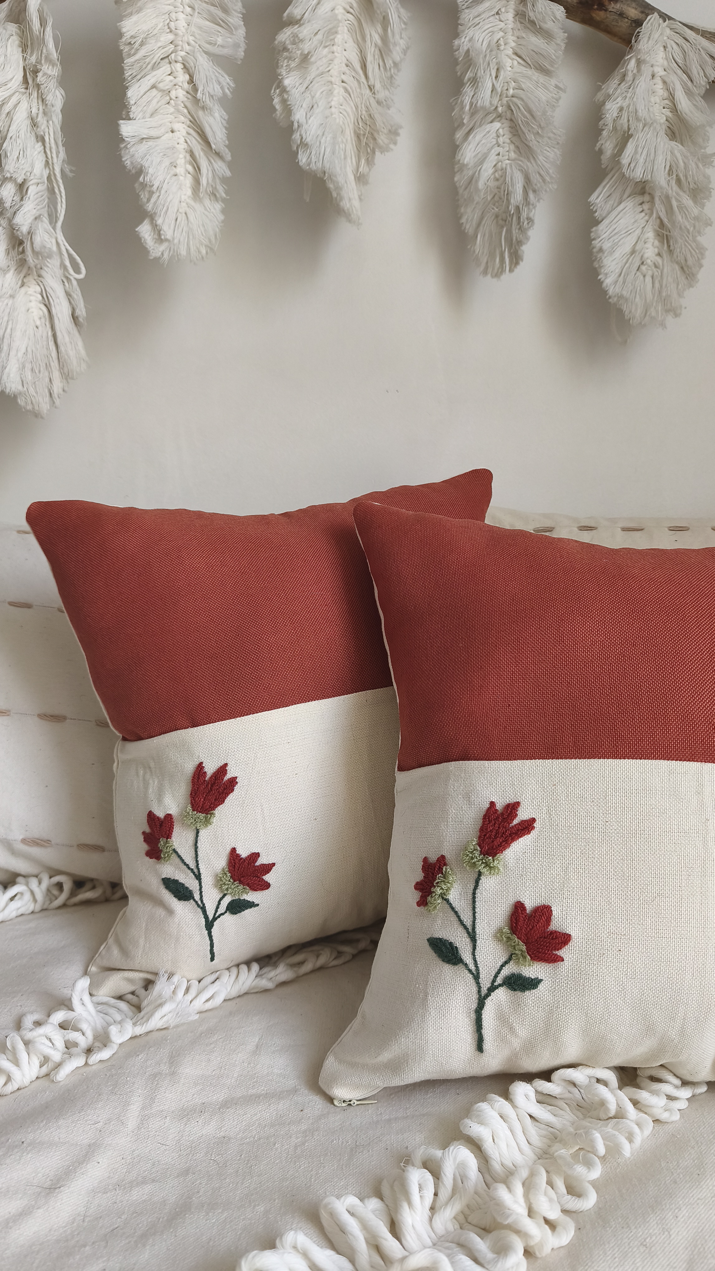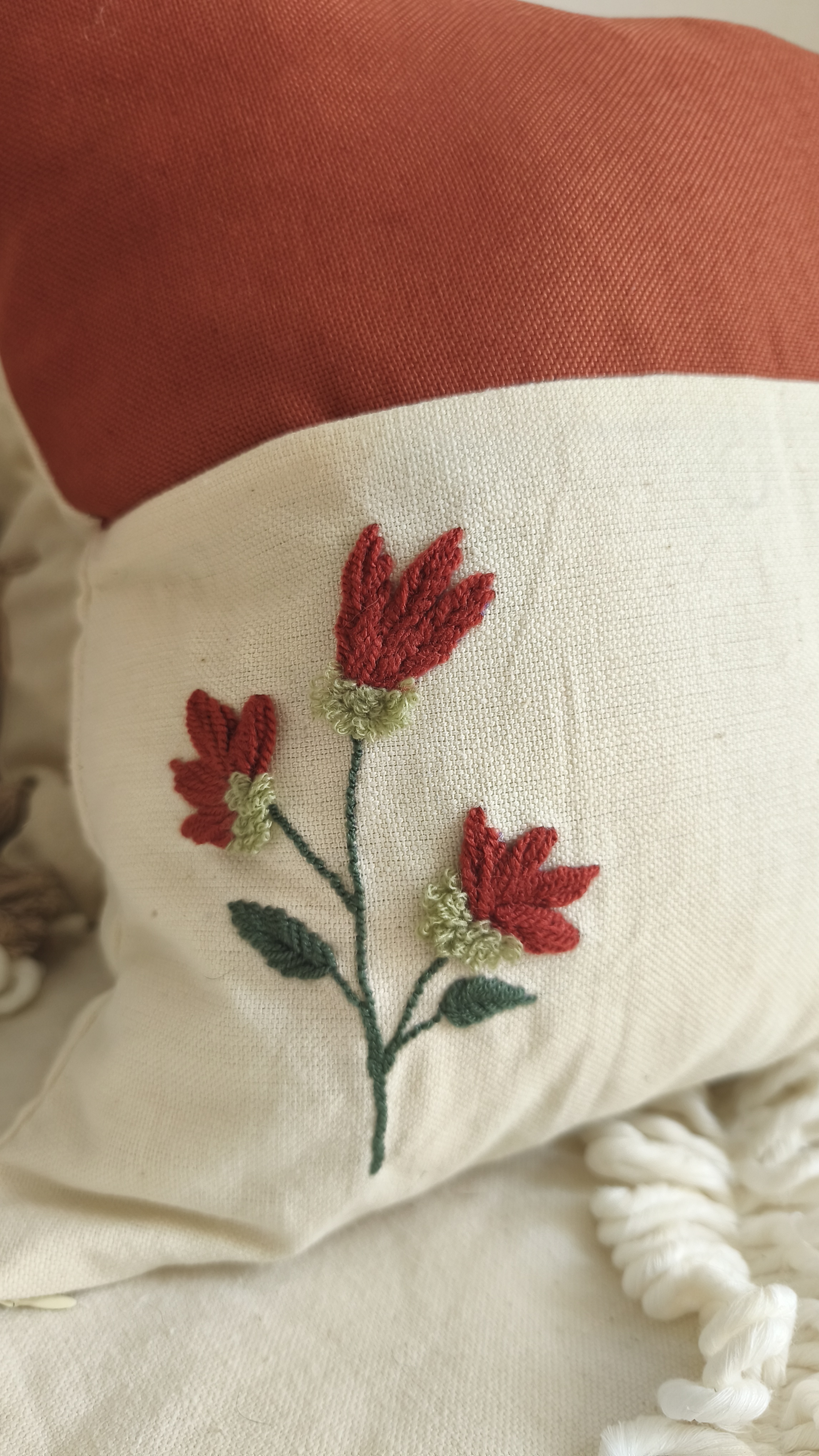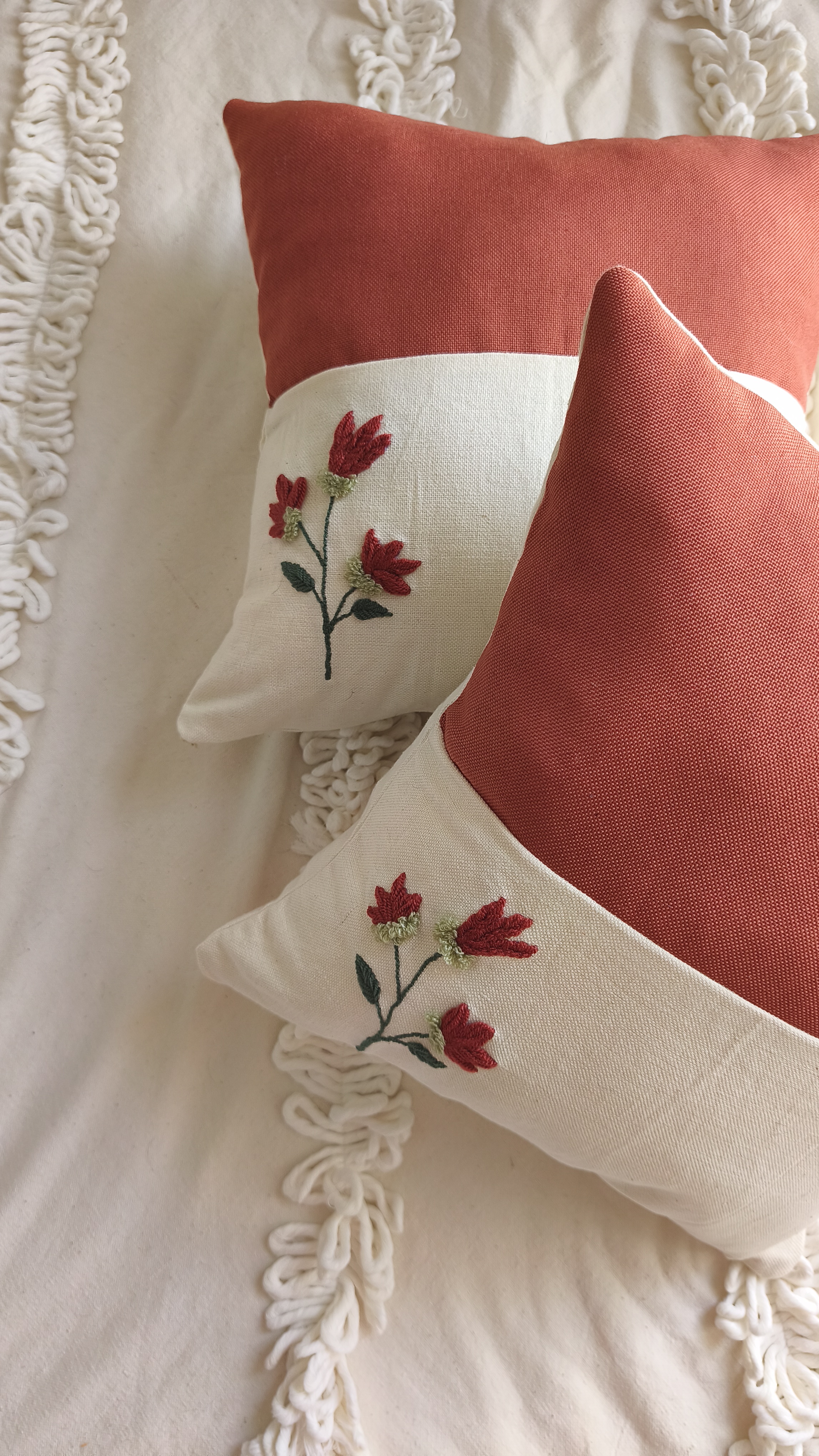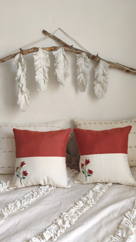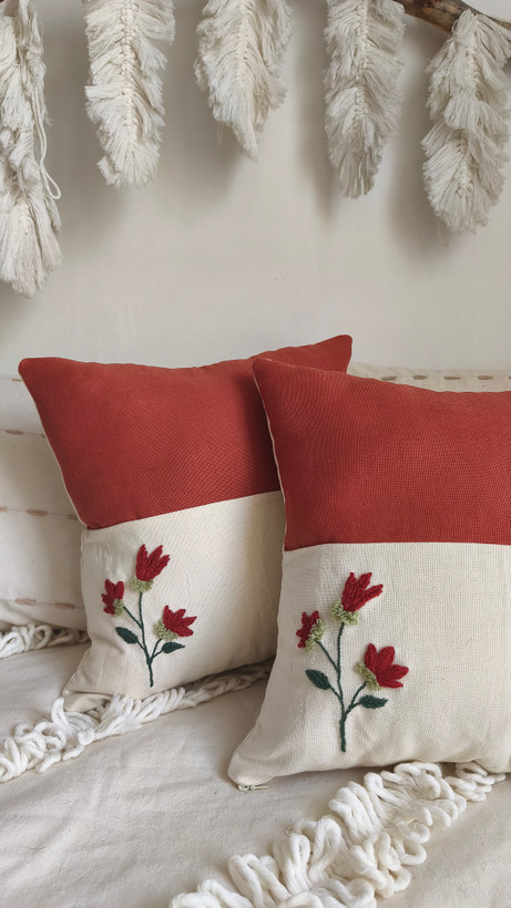 کاور کوسن دوخته شده با دست و ترکیب 2 نوع پارچه الیاف طبیعی و شانتون